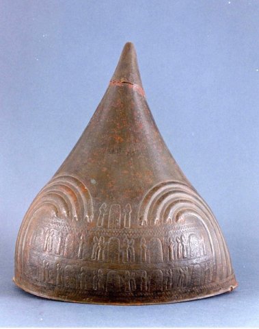 Five barns, six wine cellars, with almost 200 huge jars, have been excavated, some with cuneiform and hieroglyph marks indicating their capacity. The economic section, on the eastern side of the square, was liable to alterations. Excavations confirm that the big palace hall had existed from the very beginning, but was later transformed into a cellar. Many archeological findings, such as different kinds of arrows, blades, crucibles, molds, iron jewelry (bracelets, rings etc.), beads and horse bridles have been found from the excavations in Erebuni. Cylindrical or cone-shaped seals and weights made of stone, bronze or gold have also been discovered. They had economical, as well as informational and some religious meaning.