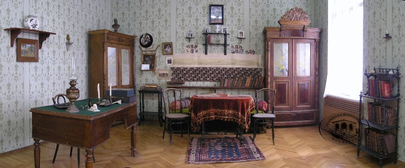 Hovhannes Tumanyan (February 19 [O.S. February 7] 1869 – March 23, 1923) was an Armenian writer and public activist. He is considered to be the national poet of Armenia. Tumanyan wrote poems, quatrains, ballads, novels, fables,critical and journalistic articles. His work was mostly written in realistic form, often centering on everyday life of his time. Born in the historical village of Dsegh in the Lori region, at a young age Tumanyan moved to Tiflis, which was the center of Armenian culture under the Russian Empire during the 19th and early 20th centuries. He soon became known to the wide Armenian society for his simple but very poetic works. Hovhannes Tumanian Museum functions since 1953. The founder and the first director was the poets daughter. Copies of manuscripts, photo documents and original illustrations of Tumanian writing, works of such artists as G.Yeritsian, A.Grigorian, G.Khanjian are exhibited here.