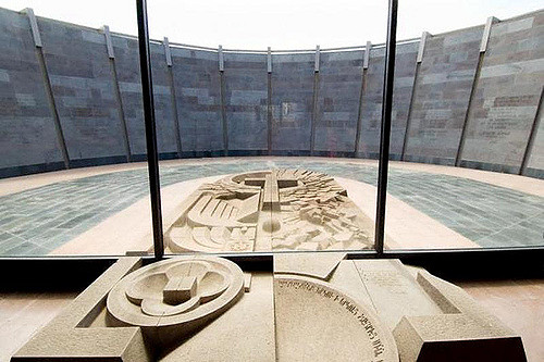 The Genocide Monument is designed to memorialize the innocent victims of the first Genocide of the 20th century. The Genocide Museum’s mission statement is rooted in the fact that understanding the Armenian Genocide is an important step in preventing similar future tragedies, in keeping with the notion that those who forget the past are condemned to repeat it. The Armenian Genocide Museum opened its doors in 1995, concurrently commemorating the eightieth anniversary of the Genocide. The Museum structure, planned by architects S. Kalashian, A. Tarkhanyan and sculptor F. Araqelyan, has a unique design. During the decennial activity the Museum received many visitors including schoolchildren, college students and an unprecedented number of tourists both local and abroad. The Republic of Armenia has made visiting the Armenian Genocide Museum part of the official State protocol and many foreign official delegations have already visited the Museum. These delegations have included, Pope John Paul II, President of the Russian Federation V. Putin, President of the Republic of France J. Shirak, and other well-known social and political figures. The impressive two-story building is built directly into the side of a hill so as not to detract from the imposing presence of the Genocide Monument nearby. The roof of the Museum is flat and covered with concrete tiles. It overlooks the scenic Ararat Valley and majestic Mount Ararat.
