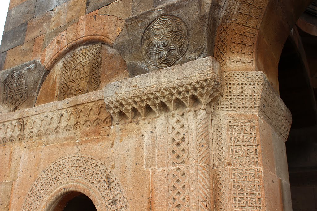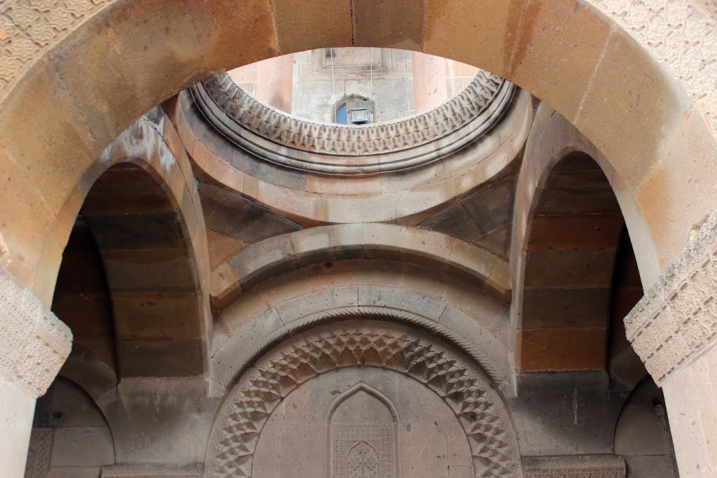 Shoghakat has a unique architecture that is called domed hall. It is erected from reddish tufa stone. The interior has a vaulted gallery above the entrance that was built at the same time with the church, surmounted by a six-rotunda-belfry. High octagonal dome emphasizes internal volume of the most illuminated part of the hall. Discreet form of architectural details and ornamental decoration has much in common with the decorations of St. Echmiadzin Cathedral and St. Hripsime Church. SurbShoghakat church of Vagharshapat was placed on UNESCO's World Heritage List in 2000.