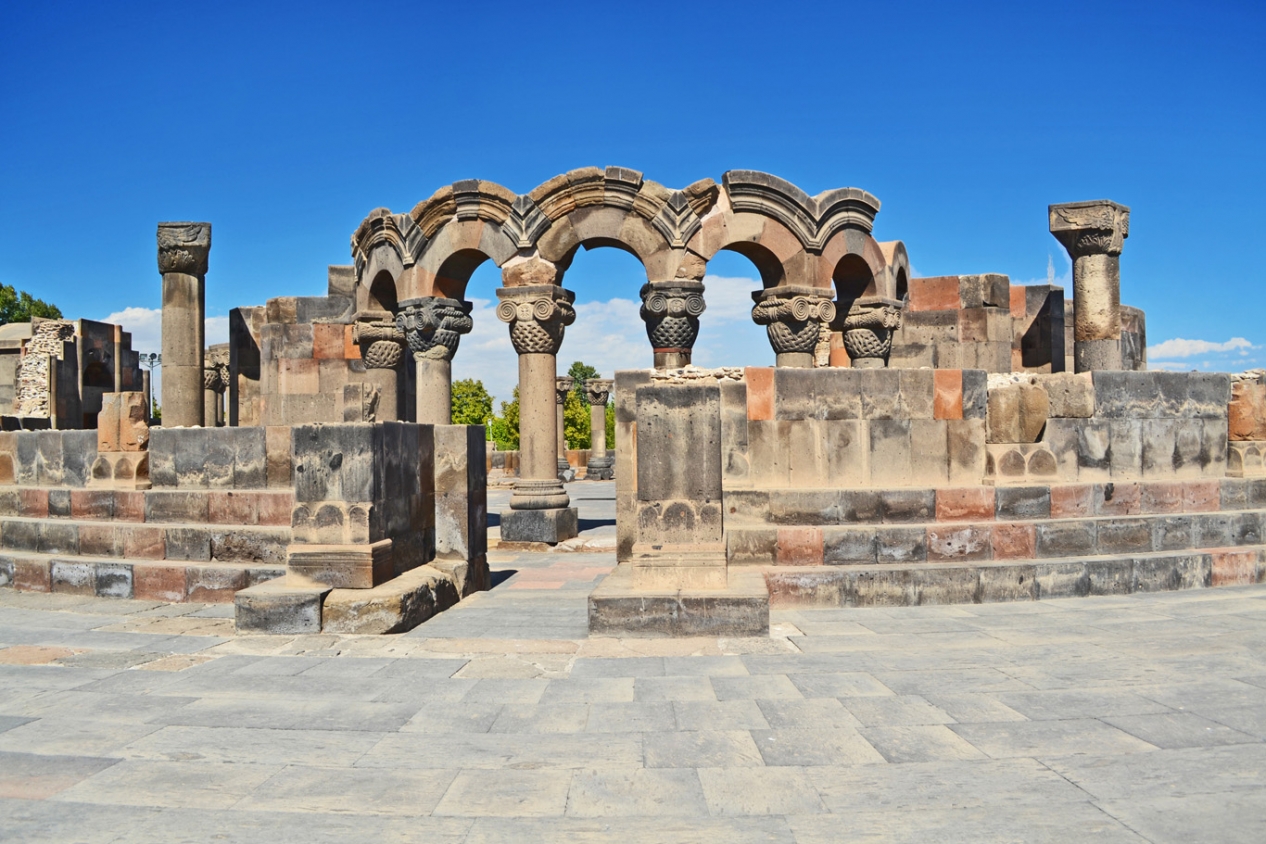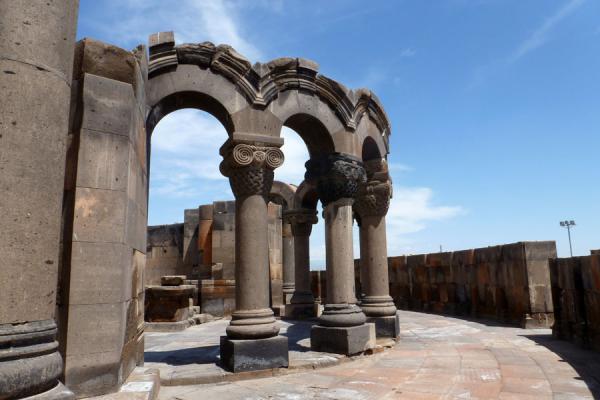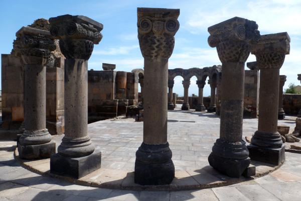 Most probably the reason why the cathedral is also called temple, Zvarnots Temple, is due to its pre-Christian origins. The excavations revealed ruins of an Urartian temple foundations. There was also a sacrificial altar and a huge cuneiform inscription dedicated to the construction of a large canal system during the reign of the King Russa II.