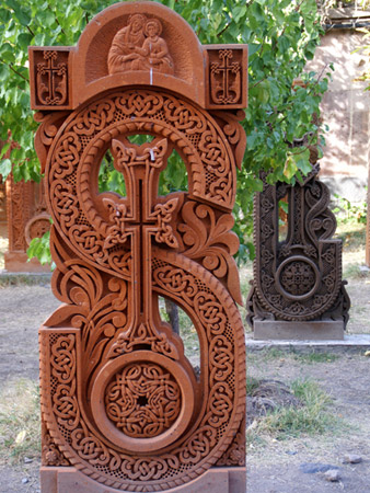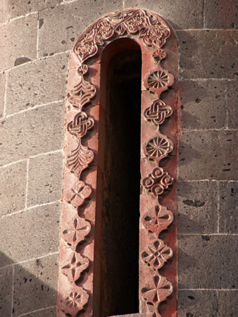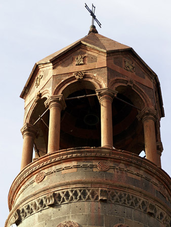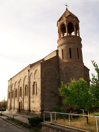 Later the hall in the church built by the Catholicos Gevorg IV during the 1875-1879. There is a grave of Mesrop Mashtots under the altar of this church. The church was covered with the icons in the 1960 by H.Minasyan. In the 1884 a bell two-story high, was sanctioned on the eastern side, an original undertaking in Armenian architecture. There is a church of St.Sion built in the 7th century, with pink smooth shaved tuff on the northeastern side of Oshakan at a place known as Mankanots.