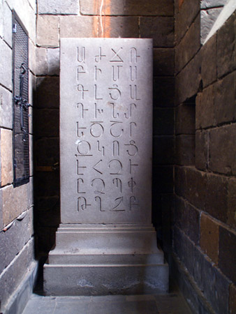 St. Mesrop Mashtots; the distinguished, multi-talented and noble (of noble birth) scholar, Holy Father and military leader, (in the spirit of Military-Monastic Order) Christian preacher and missionary, revivalist of the lost Armenian alphabet. The establisher and the beginner of the Golden Age of Armenian Literature. Founder of new educational institutions throughout Armenia. For his great deeds and accomplishments canonized by the Holy Apostolic Church of Armenia. One of his talented students and followers was Koryun, who later on by the directions of the Church of Armenia wrote and recorded the life and work of St. Mesrop.
