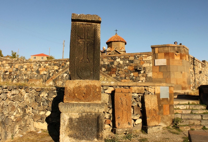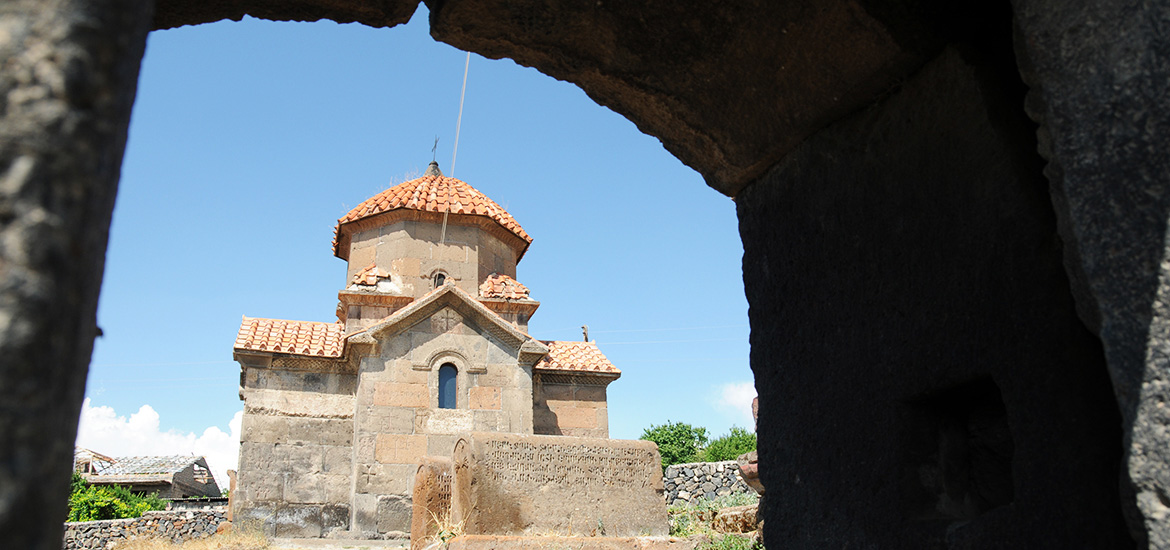 Karmravor, meaning reddish hue, is located at Ashtarak on the northeast side of town. The exact date of the construction is not known. However, the architacture of the church indicates 7th century. Karmravor was founded by priests Gregory and Manas according to the dedicatory inscription starting from the south elevation and completed on the north wall.