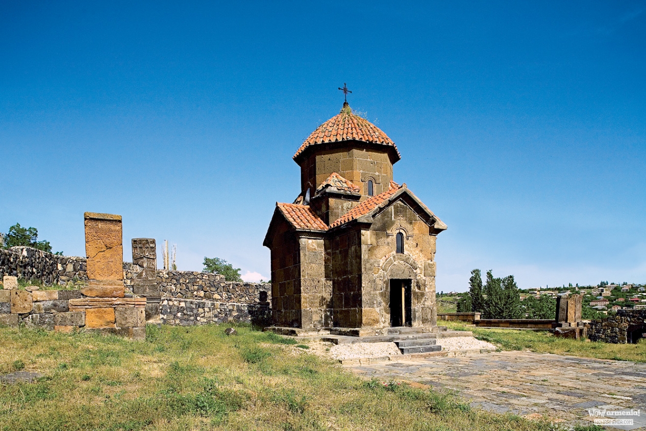 Karmaravor is a very small domed church measuring 19 feet 7 inches by 24 feet 6 inches. This church belongs to a series of small churches built as free crosses. It has a horseshoe east apse which is rectangular on the exterior.