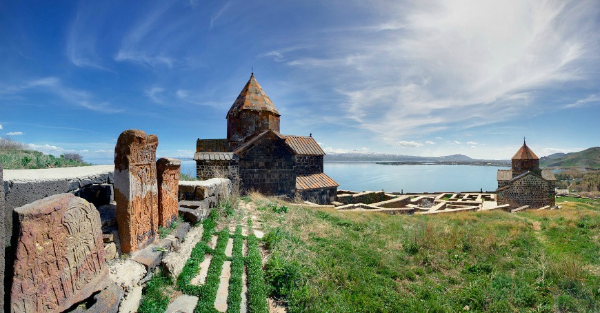 Sevanavank Monastery is located on Sevan Lake peninsula in Gegharkunik Region. After artificial draining of Sevan Lake the level fell about 20 meters and the island transformed into a peninsula. According to an inscription in one of the churches, the monastery of Sevanavank was founded in 874 by Princess Mariam, the daughter of Ashot I (who became a king a decade later). At the time, Armenia was still struggling to free itself from Arab rule. The inscription on one of the churches in the monastic complex indicates that Sevanavank was founded in 874 by Princess Mariam, the daughter of Ashot I King. The reason why the complex lacks ornaments and the tufa is not shaved is that during that time Armenia was still struggling to free itself from Arab rule.